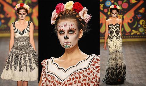 Brightly coloured tattooed skulls (known as sugar skulls) have adorned t-shirts and hoodies. Simple black and white imagery could be seen on scarves and tote bags on every second person and even models were done up in makeup resembling adorned skeletons for Lena Hoschek’s spring/summer 2013 catwalk show in Berlin. For a while there it could be found everywhere and it might be too early to tell if the trend has past or just lying low for the moment.