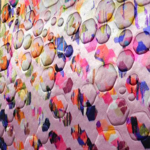Employing the use of embossing lifts (quite literally) these textile pieces onto another level enhancing the printed textures but working in combination that shows this cleaver chicken is thinking way outside the selvedge.