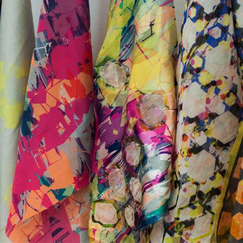 From ‘captured surveillance’ A collection of embossed fabrics constructed from 100% wool and a combination of compliment digitally printed silks.