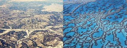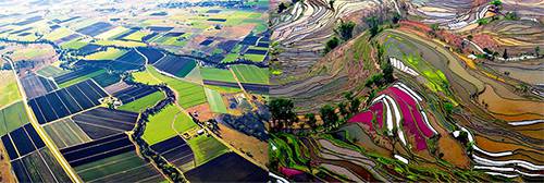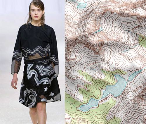 Some great examples of where to find inspiration are from the aerial shots of colourful rice paddies in China or snowy mountains anywhere, views of coral reefs and topographical maps of countries. A similar approach can be taken by getting beneath the surface, going under water or inspecting the microscopic images of all types of matter.