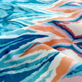 At Digital Fabrics we print on cotton fabrics and other natural fabrics using direct to fabric printing technology. In direct digital fabric printing rolls of cotton fabric are printed using large format digital printing machines directly onto fabric. We can print your design with unlimited colours on your choice of fabric. For printing on cotton fabrics we use woven bases such as cotton voile, cotton drill, cotton linen, linen deluxe and cotton poplin. Created from fibres that occur in our natural world, cotton fabrics are very pleasant to wear. They are great to wear as it’s cool and comfortable next to the skin due to their excellent moisture absorption. Natural fabric is suitable for fashion garments, tablecloths, bedding, baby clothes and various craft projects. Our cotton fabrics have a nice handle and feel and are beautiful all around your home and family. If you’re after large regions of pure flat colours we recommend poly fabric, as we do not recommend printing large regions of pure, flat colours on these fabrics. Also, some prints on natural fabric have a tendency to fade as a result of washing. We recommend doing a wash test of fabric samples to determine the colourfastness that suits your project best before committing to a full print run as each fabric responds to washing differently.