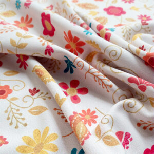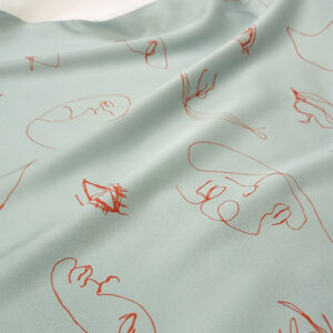 A vibrant multidirectional African inspired print in aqua red and orange hues. This bold hand illustrated print is a large-scale print with sectional motifs approximately 10 cm in size. Design printed on high quality fabric, please pick your fabric base…