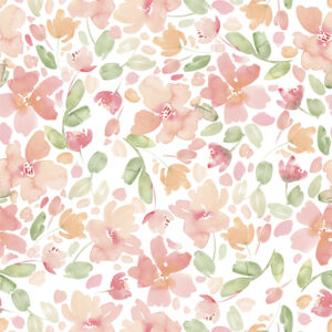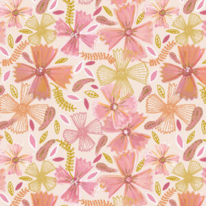 Pink garden is a soft, feminine print featuring beautiful pink and coral tones, complimented by subtle green leaves. Hand painted in a loose, organic watercolour style, this print is truly unique. Larger flowers measure at approximately 7cm x 7cm, sm