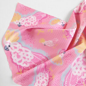 Cheeky White Cockatoo is inspired by my large range of Australian fauna artworks that feature iconic birds from all over Australia. The background is a soft pink with a light yellow and aqua gingham pattern over the top. The cockatoo…