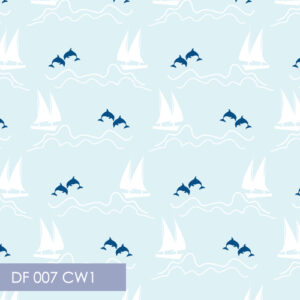 Cartoonish ocean inspired sailboat and dolphin print. Design printed on high quality fabric, please pick your fabric base in the drop-down menu below. Fabric is measured, cut and sold by the metre.