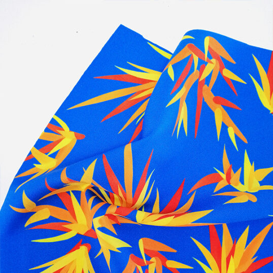 Bird of Paradiso – a bold and bright pattern of hand cut paper motifs, inspired by showy Bird of Paradise flowers.
