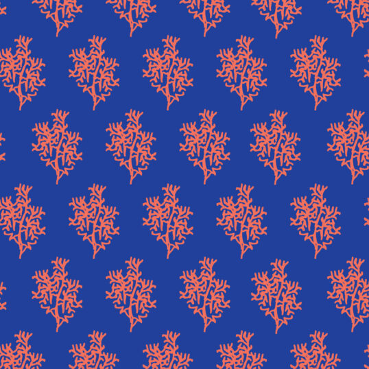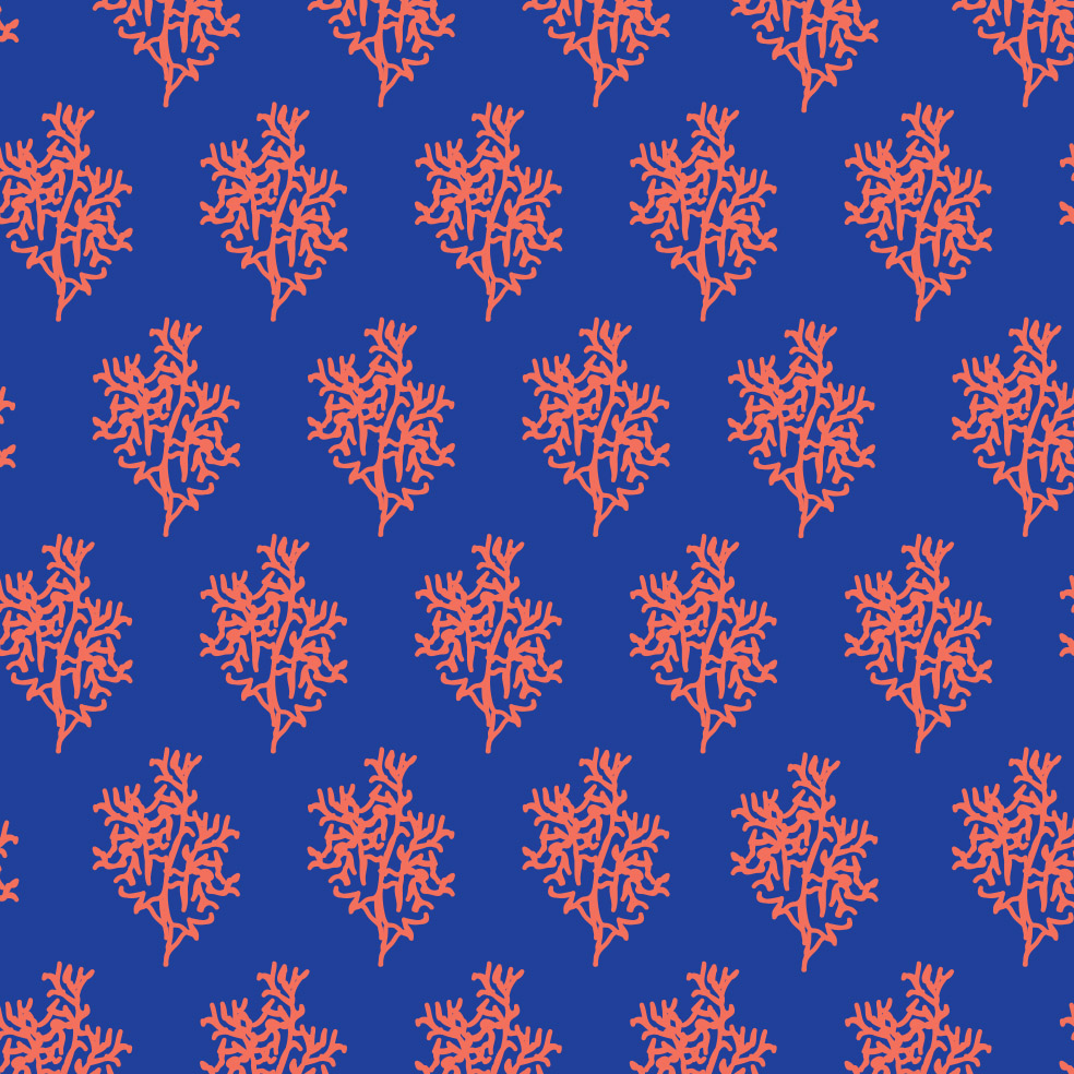 Blue and Coral coloured Coral fabric design. Design printed on high quality fabric, please pick your fabric base in the drop-down menu below. Fabric is measured, cut and sold by the metre.