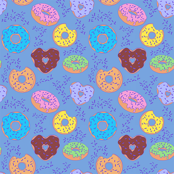 Who doesn’t like food? Donuts are many peoples’ comfort food or special treat. These baked treats are the best. Available in two colours this larger sized design is the sprinkle on top of any fashionable pattern.