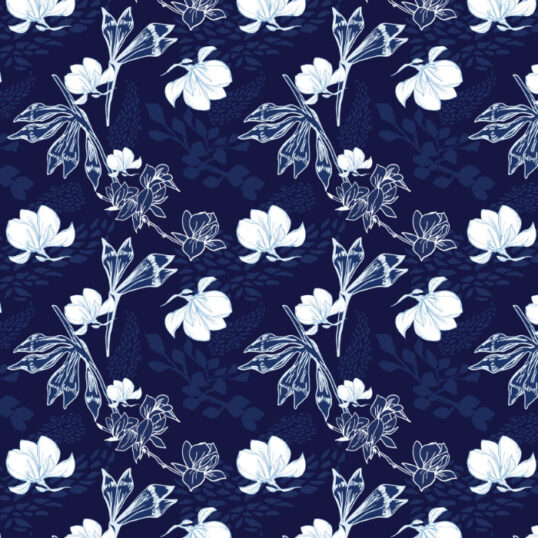 Indigo Magnolia brings together the stylistic motifs of the collection and compliments these motifs with the introduction of hand drawn magnolia flowers. The small magnolia is 3.5cm x 3cm and the background paisley motif is 15.5cm x 8cm