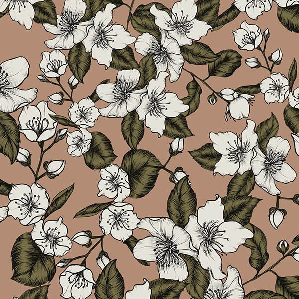 Jasmine Scent is a soft and subtle print that reveals a romantic and ethereal atmosphere. Muted dusty shades make it a graceful and delicate unisex pattern. Jasmine Scent is a small to medium-scale print with motifs varying between 2cm and 7cm width.
