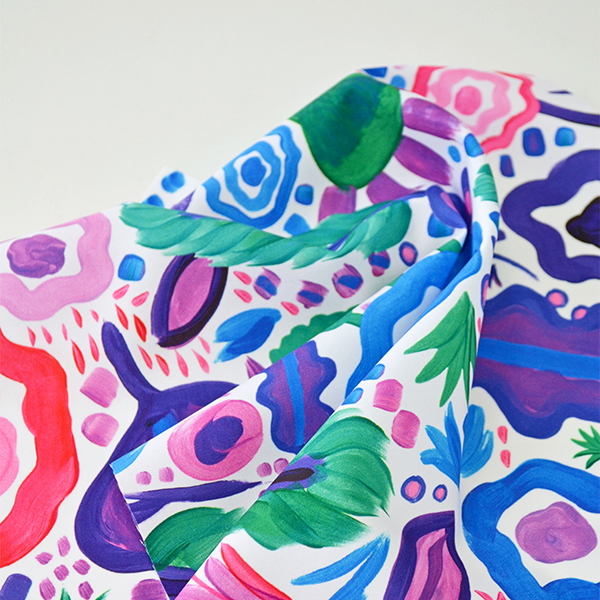 Inspired by a camping trip in the woods on a sunny winters day, an imagined forest floor full of bright coloured leaves and plants. This is a small scale print with motifs ranging from 1cm to 10cm and works well for fashion or interiors. Design printed on high quality fabric, please pick your fabric base in the drop-down menu below. Fabric is measured, cut and sold by the metre.