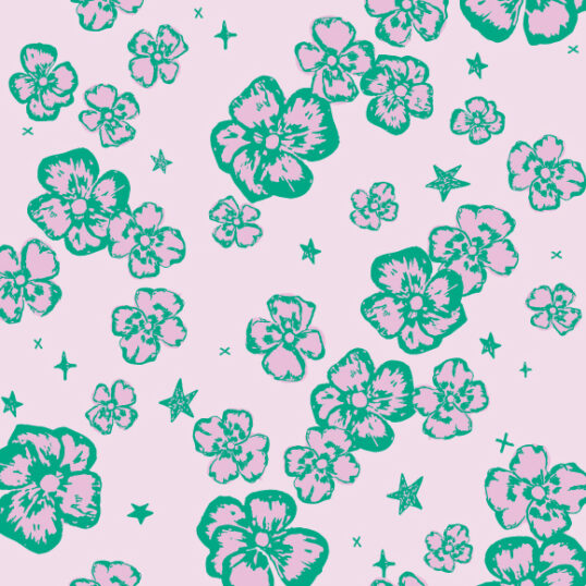 A memory of scribbling on the school desk lost in a daydream or the inside of your journal while chatting on the phone to your bestie. Maggie May is all the whimsy, nostalgic thoughts dancing like stardust. Wildly scribed pansies in vivid green and the yummiest pink make Maggie the dreamer she is. Maggie May is a small scale pattern with the smallest floral motif being about 0.5cm wide, and the largest being about 10cm wide when printed at highest quality.