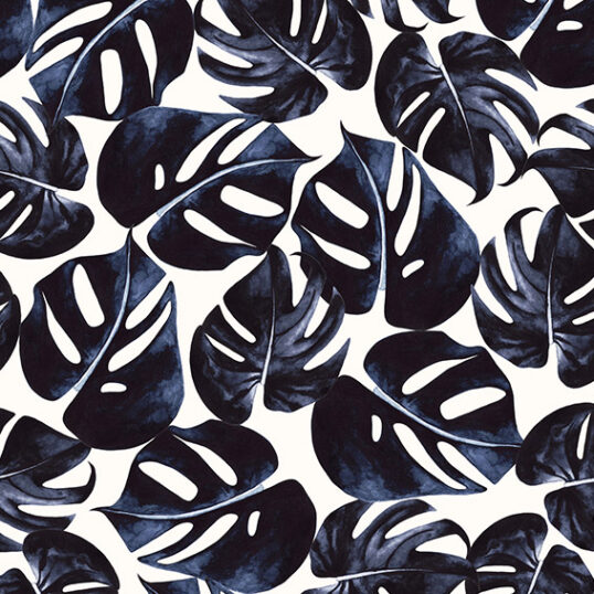 Make a statement with our Midnight Jungle design that features stunning deep blue cheese leaf motifs with a classic off-white background. The gorgeous hand painted leaves range from 32 cm to 49 cm in length. Design printed on high quality fabric, please pick your fabric base in the drop-down menu below.