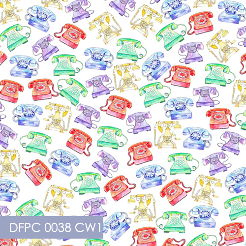 Hand drawn illustrations of old style phones in scattered layout. This fabric design printed on high quality fabric, please pick your fabric base in the drop-down menu below.