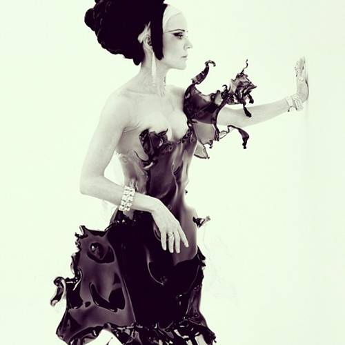 This garment was inspired by the actual splash of water onto Daphne Guinness which was recorded on high speed camera’s by Nick Knight. Van Herpen sculpted the natural movement of water using pet G plastic, creating a one of a kind garment. Iris van Herpen truely thinks outside of the box, not only with her latest design but all her designs fusing old and forgotten techniques with innovative materials.