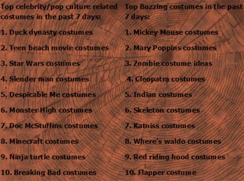 With Halloween right around the corner, Yahoo has released the lists for the top 10 searched Halloween related items this season.